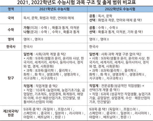 고1 학생들은 지원 희망 대학들이 2022학년도 대학입시에서 수능시험을 어떻게 반영하는지, 특히 수능시험 반영 영역과 국어·수학·탐구 영역의 지정 선택 과목 등을 정확히 파악하고 그에 맞춘 수능시험 대비 계획을 세워 실천하길 당부한다.