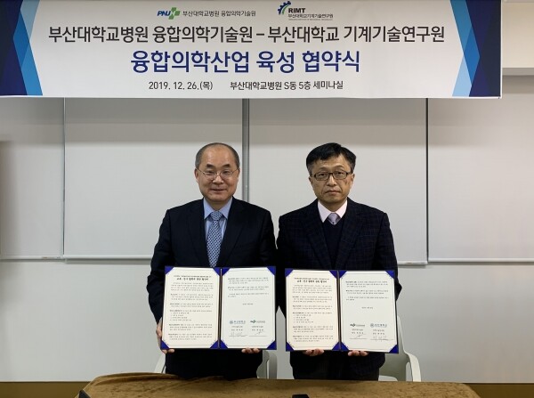 [대학저널 임지연 기자] 부산대학교(총장 전호환) 기계기술연구원(원장 최재원)과 부산대학교병원 융합의학기술원(원장 최병관)이 융합의학 과학기술 발전과 전문인력 양성을 위해 지난 26일 부산대병원 융합의학기술원(S동) 5층에서 교육·연구 협력에 관한 협약을 체결했다.
