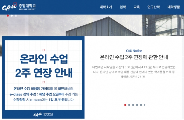 중앙대학교는 19일, 박상규 총장 명의 공지사항을 통해 대면수업 시작일을 기존 30일에서 4월 13일로 변경한다고 밝혔다.