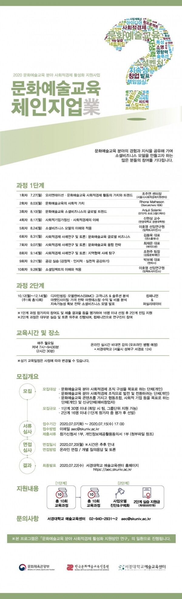 [대학저널 황혜원 기자] 서경대학교(총장 최영철) 예술교육센터가 ‘문화예술교육 체인지 업業’ 참여자를 오는 15일까지 모집한다.