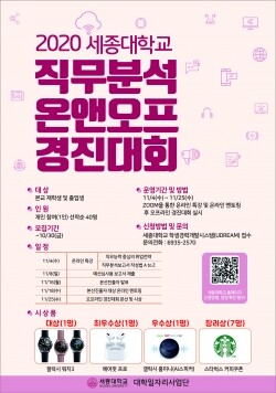 [대학저널 백두산 기자] 세종대학교(총장 배덕효) 취업지원처(대학일자리사업단)는 11월 4일부터 11월 25일까지 ‘직무분석 온앤오프 경진대회’를 진행한다.
