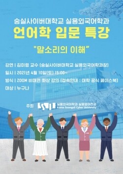 [대학저널 황혜원 기자] 숭실사이버대학교(총장 한헌수)는 5일 실용외국어학과가 오는 10일 오후 3시 실용영어전공 언어학 입문 온라인 특강을 진행한다고 밝혔다.