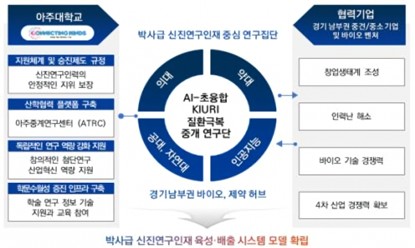 아주대는 ‘인공지능-초융합’을 활용한 질환 극복에 나선다. 기초 의·생명과학 및 임상의학 간 중개연구, 인공지능 기반 신약 개발, 생체기능 조절용 바이오 신소재 분야의 고급 인재를 양성할 계획이다.