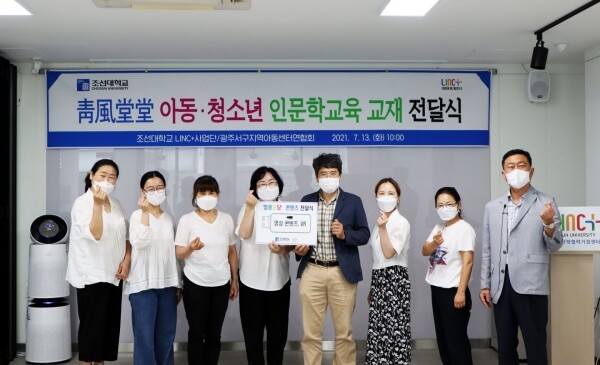 [대학저널 오혜민 기자] 조선대학교 링크플러스사업단은 광주 서구지역아동센터연합회와 지난 13일 '靑風堂堂(청풍당당), 아동·청소년 인문학 교육 콘텐츠 전달식'을 진행했다고 14일 밝혔다.
