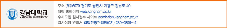 수험생 분들께서는 변경된 사항을 수시모집 요강에서 잘 확인하셔서 지원해 주시기 바랍니다. 궁금한 사항은 강남대 입학처로 문의 부탁드립니다.”