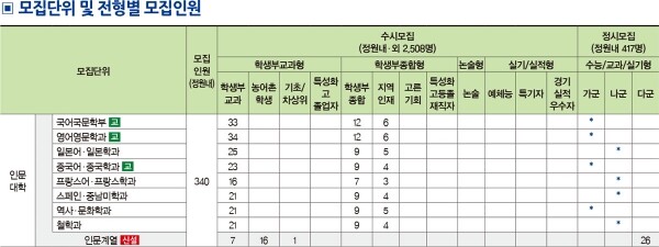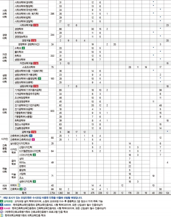 수시에서 전체 86%인 2,508명 모집…계열단위 통합선발 시행