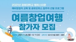 [대학저널 백두산 기자] 경희대학교(총장 한균태)는 캠퍼스타운사업단(단장 박재홍)이 ‘(가칭)이문혁신창업센터 공유오피스’ 입주자를 선발하기 위한 예비창업자 교육 프로그램 ‘2021년 여름창업여행’을 개최한다고 10일 밝혔다.