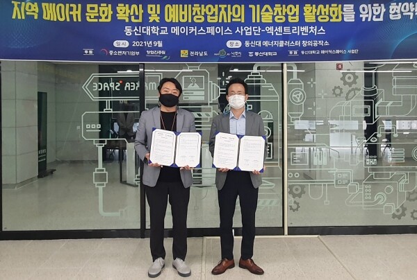 [대학저널 김주원 기자] 동신대학교(총장 최일)는 메이커스페이스 사업단이 창의적 스타트업을 발굴, 육성하는 엑센트리벤처스와 지역 메이커문화 확산과 예비창업자의 기술창업 활성화를 위한 업무협약을 체결했다고 15일 밝혔다.