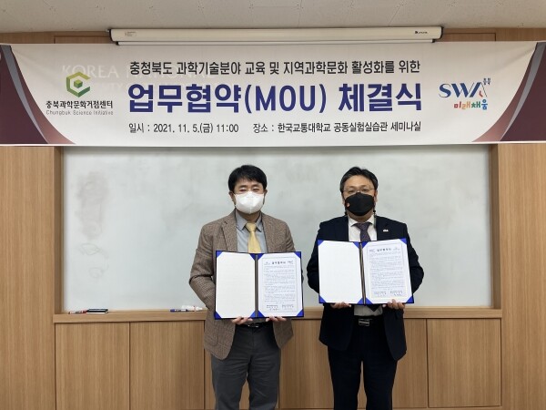 한국교통대에 따르면 이번 업무협약은 과학기술 분야 교육과 지역 과학문화 활성화를 위한 양 기관의 협력을 위해 체결됐다.