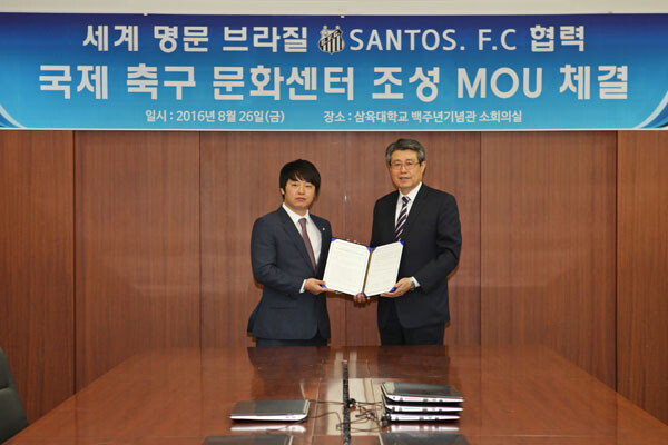 [대학저널 이원지 기자] 삼육대학교(총장 김성익)와 메이트인터내셔널은 26일, 삼육대 백주년기념관 소회의실에서 국제유소년축구문화센터 조성을 위한 MOU를 맺었다.