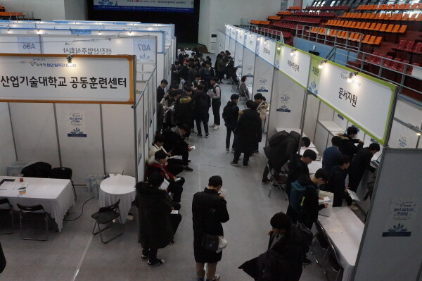 [대학저널 임지연 기자] 한국산업기술대학교(총장 안현호, 이하 산기대)가 11월 30일 산기대 체육관에서 ‘2018 일학습병행 청년 일자리 한마당’ 행사를 개최했다.