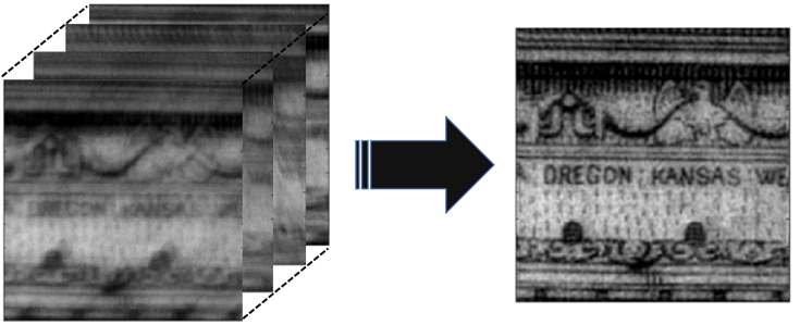 이 상태에서는 해상도를 저하하는 성분만 모아 평균값을 낼 수 있다. 무작위적인 해상도 저하 원인 요소들의 평균을 구해 제거하는 개념으로, 실제 물체의 정보만 추출해 고해상도 영상이 복원된다.