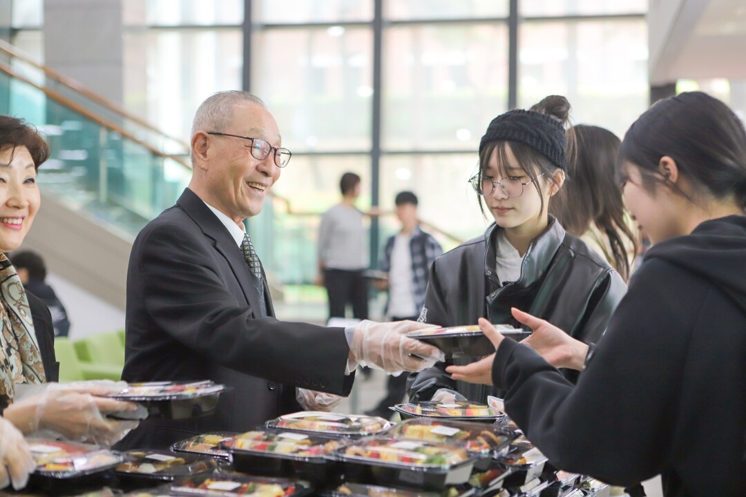강일구 총장은 학생들에게 직접 도시락을 나누어 주며 자리에 앉았다. 형식에 얽매이지 않은 분위기 속에서 식사와 대화가 자연스럽게 이어졌다. 학생들은 학업과 대학 생활은 물론 개인적인 고민까지 꺼냈고 강 총장은 눈높이에 맞춰 답하며 의견을 주고받았다.