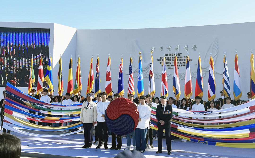 부경유엔서포터즈 학생 20여 명은 유엔기념공원에서 진행된 이날 행사에서 미래세대 학생 대표로 헌정공연 ‘영원한 동맹’ 퍼포먼스에 참여해 유엔기, 태극기, 22개 참전‧지원국기를 게시하는 등 행사 전반을 지원했다.