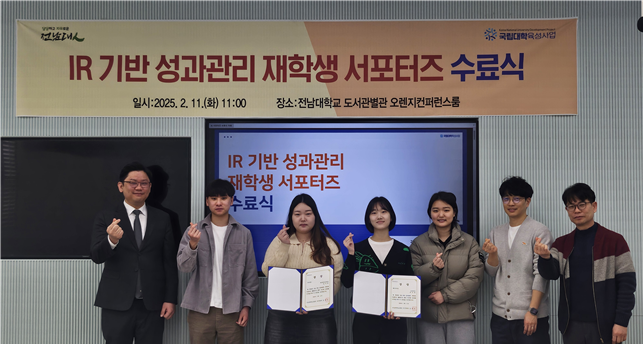 [대학저널 이선용 기자] 전남대학교는 지난 2월 11일 ‘IR 기반 성과관리 재학생 서포터즈’ 1기 수료식을 개최했다고 14일 밝혔다.