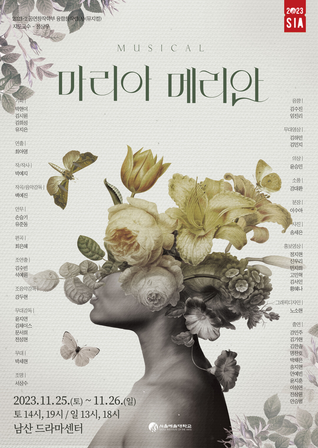 뮤지컬 ‘마리아 메리안’은 서울예대 유일의 창작뮤지컬 제작 과정인 ‘MU:BORN’ 독회 쇼케이스를 통해 당선된 작품으로, ‘뮤지컬의 탄생(BORN)’과 ‘뮤지컬의 근본(本)’이라는 뜻을 가진 ‘MU:BORN’에서는 지난 6월 역대 최다인 5개의 참가작이 관객을 만난 바 있다.