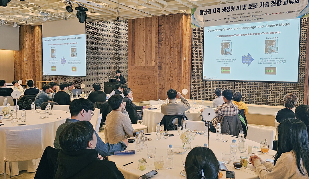 [대학저널 이선용 기자] 국립부경대학교와 ㈜코렌스이엠, 한국과학기술정보연구원, 팀리부뜨이 지난 27일 파크하얏트부산호텔에서 ‘동남권 지역 생성형 인공지능(AI) 및 로봇 기술 현황 교류회’를 공동 개최했다.