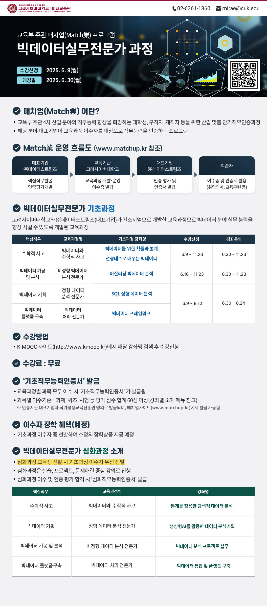 고려사이버대 ‘빅데이터 실무전문가 과정’ 포스터.