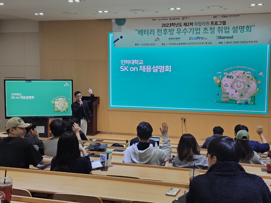 [대학저널 이선용 기자] 인하대학교는 최근 배터리 취업 강화 프로그램인 ‘배터리 전후방 우수기업 초청 취업설명회’를 진행했다고 15일 밝혔다.