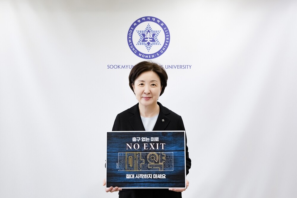 [대학저널 온종림 기자] 숙명여자대학교 장윤금 총장이 26일 마약 근절을 위한 ‘NO EXIT' 캠페인에 참여했다.