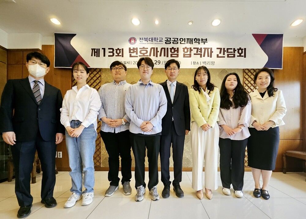 전북대 공공인재학부가 29일 올해 변호사시험 합격자들을 초청해 학부생 등 구성원 전체가 참여한 가운데 간담회를 가졌다. 사진=전북대 제공
