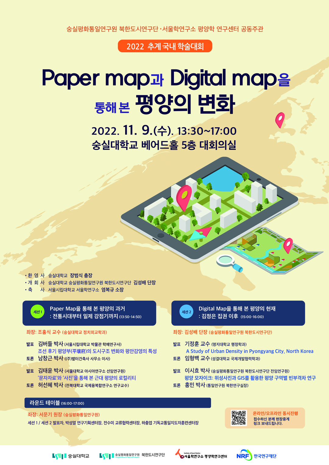 오는 11월 9일 베어드홀 5층 대회의실에서 열리는 학술대회의 세션 1에서는 서울시립대 박물관 학예연구사 김버들 박사, 볕터건축사 사무소 이사 남창근 박사, 서울대 아시아연구소 선임연구원 김태윤 박사, 전북대 국제융복합연구소 연구교수 허선혜 박사가 ‘Paper map을 통해 본 평양의 과거: 전통시대부터 일제 강점기까지’라는 주제로 발표와 토론을 한다.