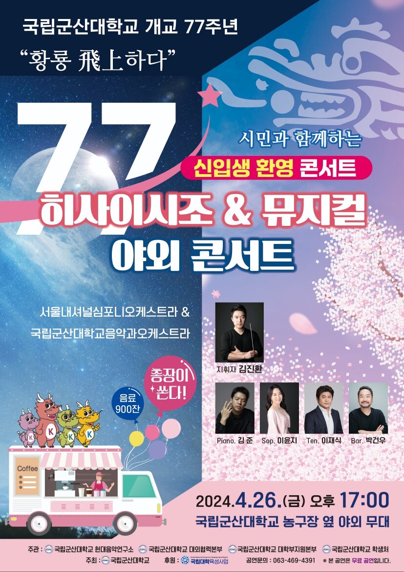이장호 총장은 “우리 대학은 지역 사회의 문화예술 발전에 기여하고, 시민에게 질 높은 음악 체험의 장을 제공하기 위해 다양한 프로그램을 개발하고 있다. 이번 콘서트는 시민들의 성원 덕분에 성장하고 있는 우리 대학의 성과를 공유하고 기념하기 위한 것이다. 많은 분이 함께해서 학생들의 꿈과 국립군산대학교의 발전을 성원하고 격려해 주시길 바란다”고 말했다.