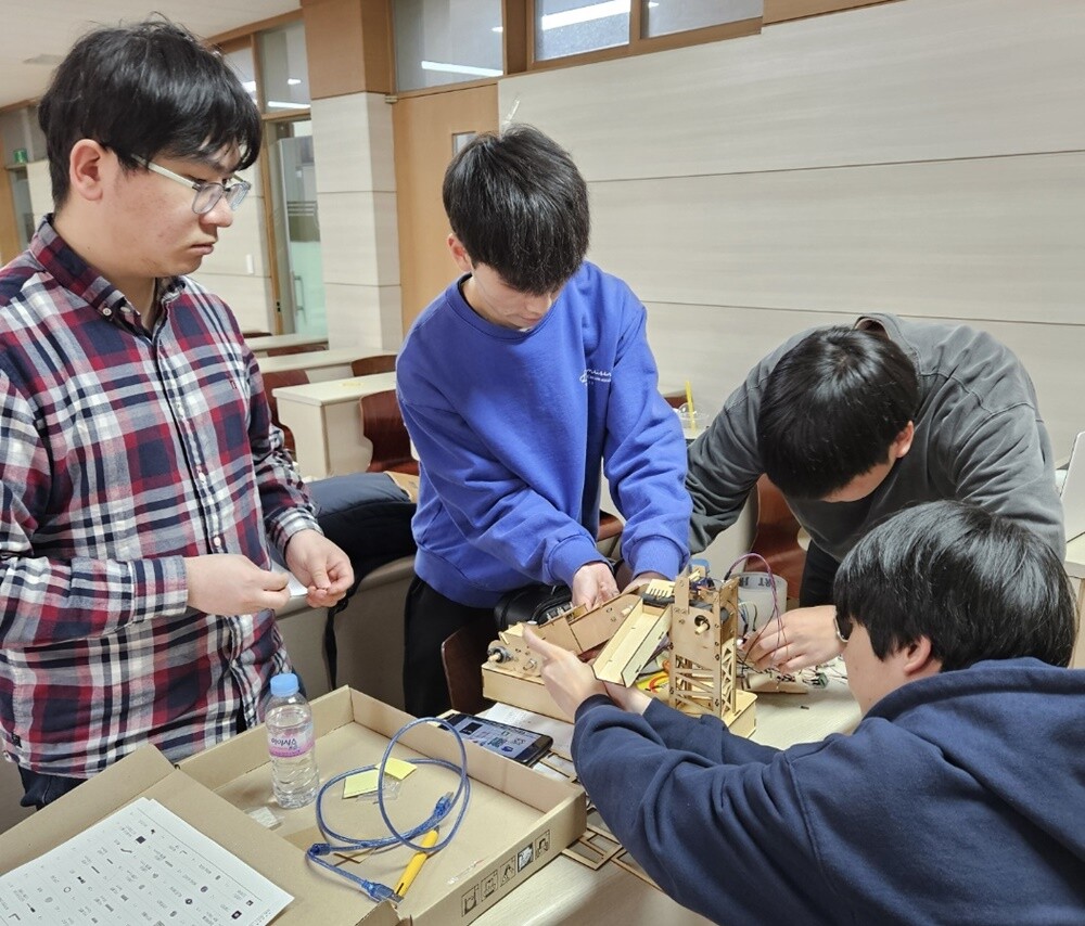 학생들은 스마트팩토리 컨베이어벨트 관련 부품에 대한 이해를 시작으로 스텝모터·적외선 송수신기·컬러센서·서보 모터 이론 및 응용에 대한 실습 교육 후 제한된 시간 동안 최선을 다해 메이커톤 경진대회에 참가했다.