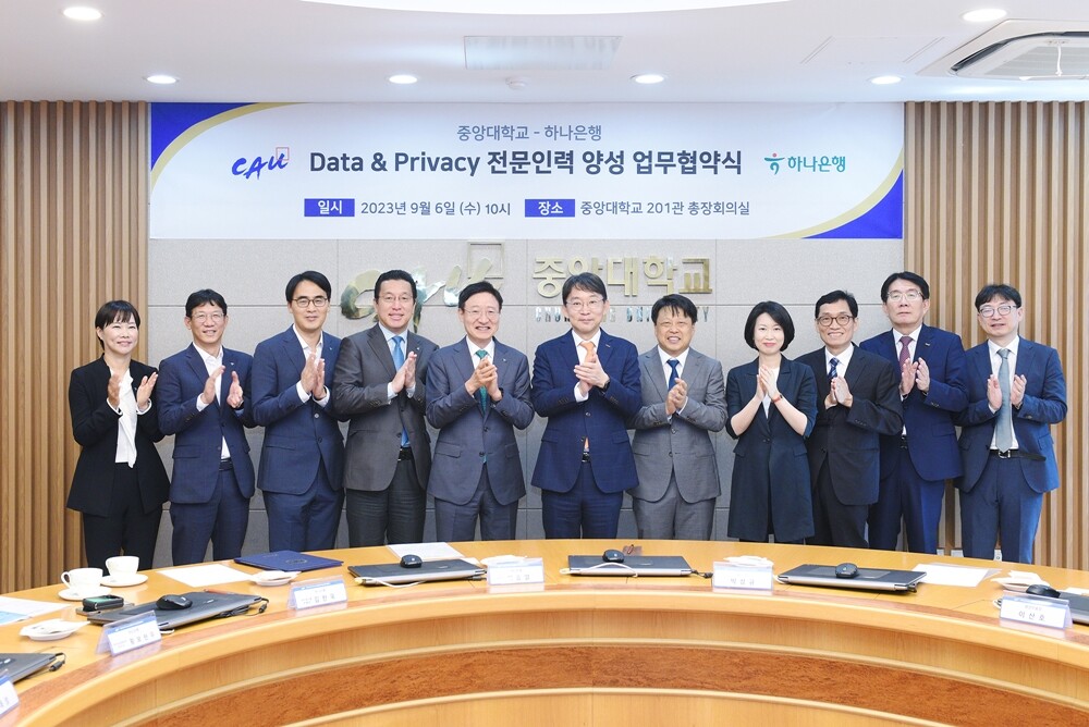 중앙대는 6일 하나은행과 ‘Data & Privacy 전문인력 양성을 위한 업무협약식’을 서울캠퍼스에서 진행했다.