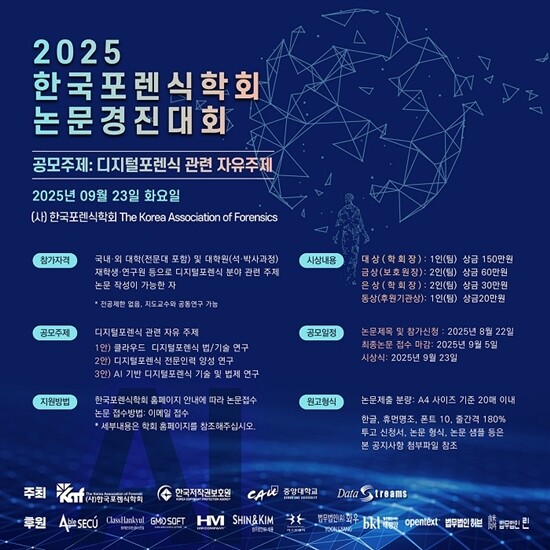 김영대 학회장은 “생성형 AI, 클라우드, 딥페이크 등 신기술이 발전하며 새로운 유형의 사이버 범죄들이 등장하며, 범죄의 사실과 원인을 찾기 위한 디지털포렌식 기술은 과학수사의 핵심 요소로 그 중요성이 강조되고 있다”며, “이번 논문경진대회를 통해 AI와 클라우드 등 신기술에 대응하기 위한 다양한 디지털포렌식 기술 및 법제도 연구를 탐구하며 학생들의 독창적이며 혁신적인 연구 논문을 기대한다.”고 밝혔다.