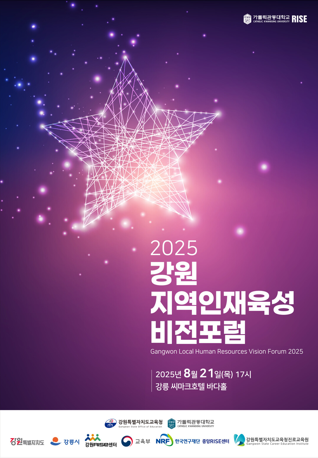 [대학저널 이선용 기자] 강원특별자치도교육청과 가톨릭관동대학교는 오는 8월 21일 오후 5시, 강릉 씨마크호텔 바다홀에서 ‘2025 강원 지역인재육성 비전포럼’을 개최한다.