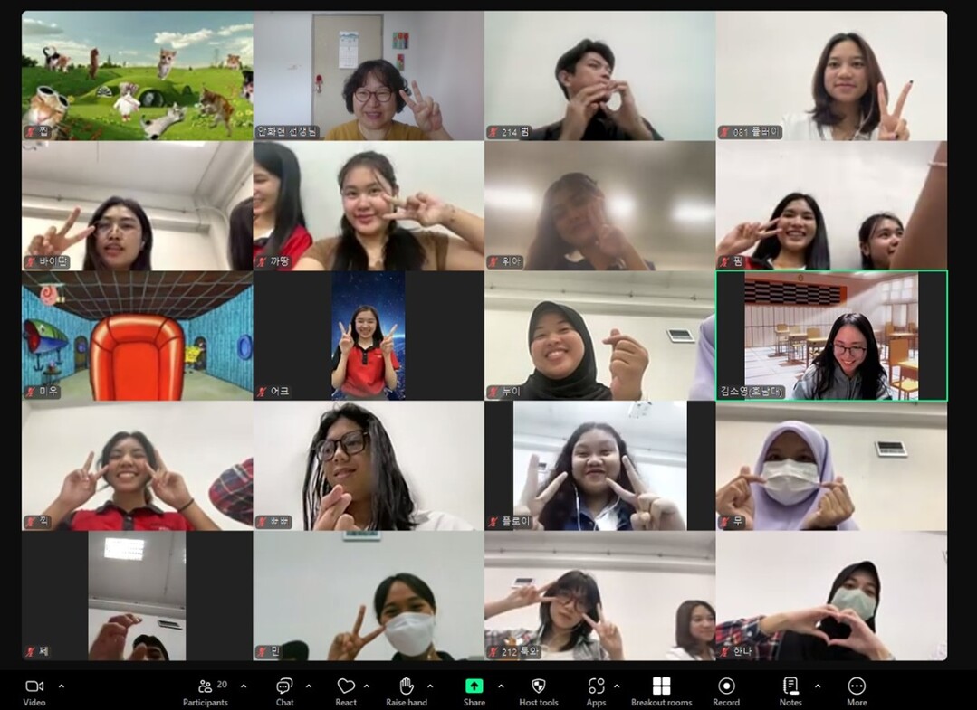 실시간 온라인으로 진행된 간담회에서는 ‘한국어 초급1’ 수업을 들으면서 궁금했던 점에 대한 질의와 응답이 이뤄졌으며, 이밖에도 취미 생활, 한국어를 배우는 이유, 한국과 태국의 차이점 등 다양한 주제를 놓고 이야기를 나누었다.