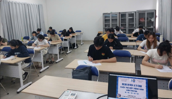 한글날을 기념해 베트남 다낭외대에서 열린 ‘한국어 쓰기 대회’ 모습. 사진=안양대 제공 |