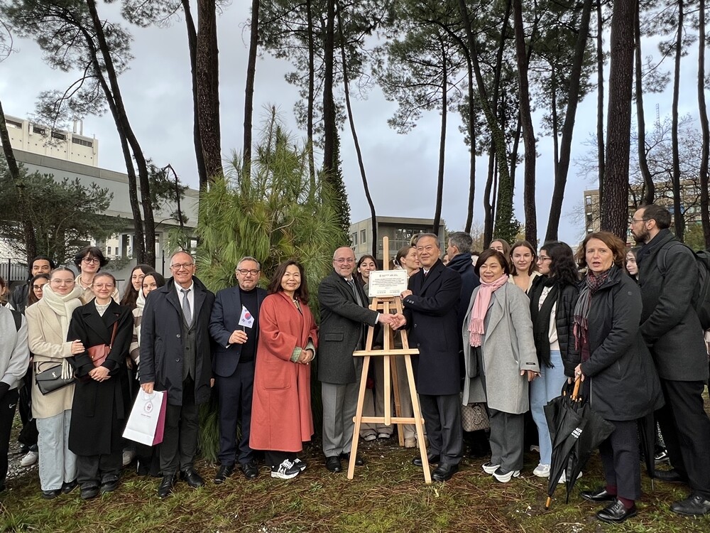 프랑스 보르도몽테뉴대학이 전북대와의 파트너쉽을 기념하는 수목 식재 행사를 진행했다. 사진=전북대 제공 |