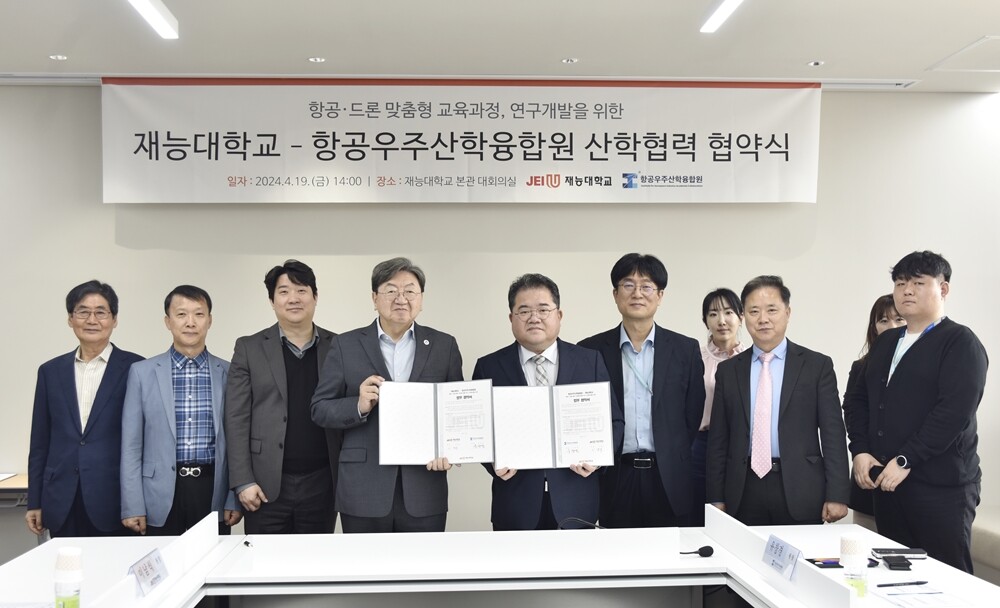 [대학저널 온종림 기자] 재능대학교와 항공우주산학융합원이 항공드론분야 맞춤형 우수 인재양성을 위한 산학협약을 체결했다.