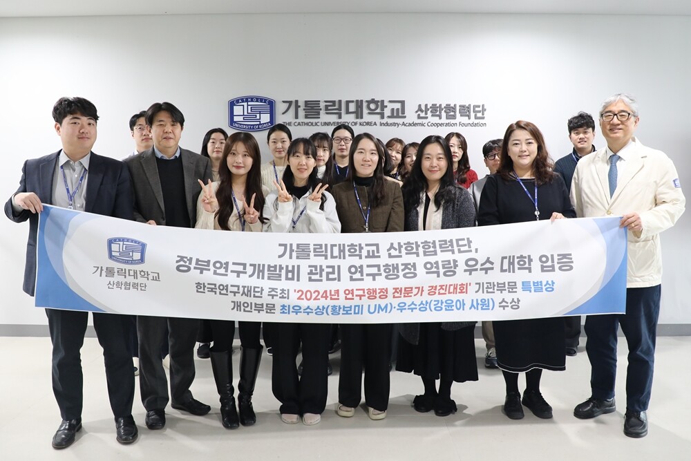 [대학저널 온종림 기자] 가톨릭대학교 산학협력단이 ‘2024년 연구행정 전문가 경진대회’에서 기관 부문 특별상과 개인 부문 최우수상 및 우수상을 수상하며, 연구행정 역량의 우수성을 대내외적으로 입증했다.