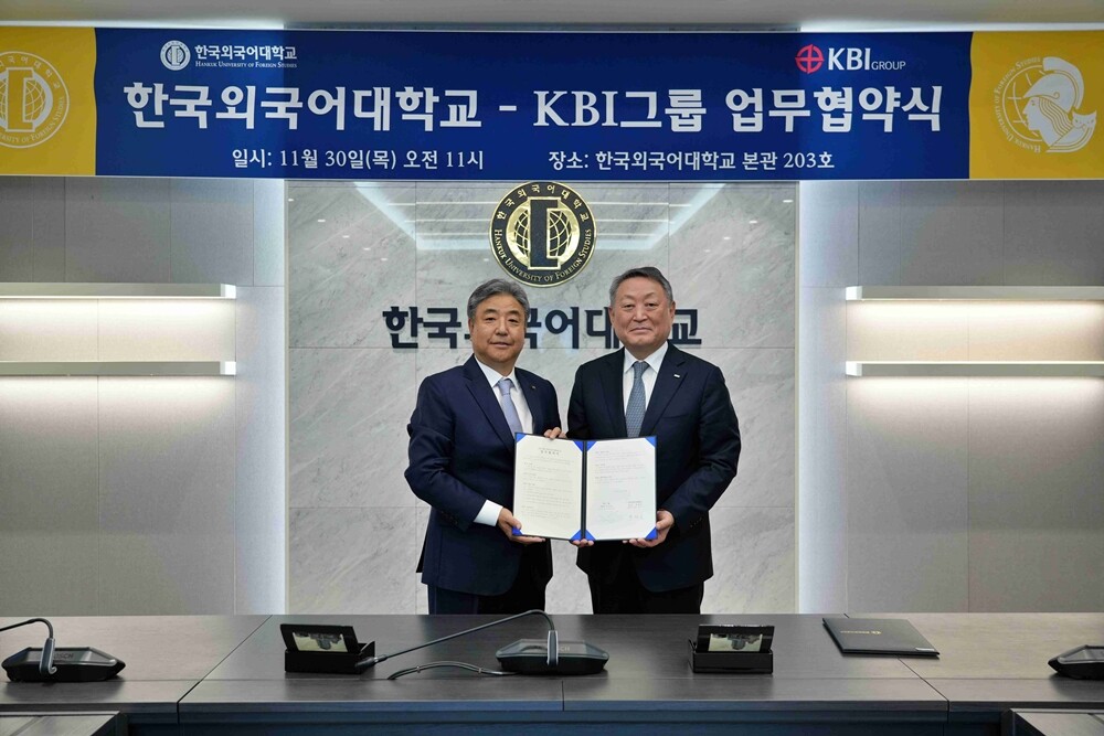 [대학저널 온종림 기자] 한국외국어대학교 대학일자리플러스본부가 지난 11월 30일 서울캠퍼스 대학본부 2층 이덕선 회의실에서 KBI그룹과 외국어·글로벌 특화 인력 채용 활성화 및 글로벌 역량 강화 지원 체계 확립을 위한 업무협약을 체결했다.