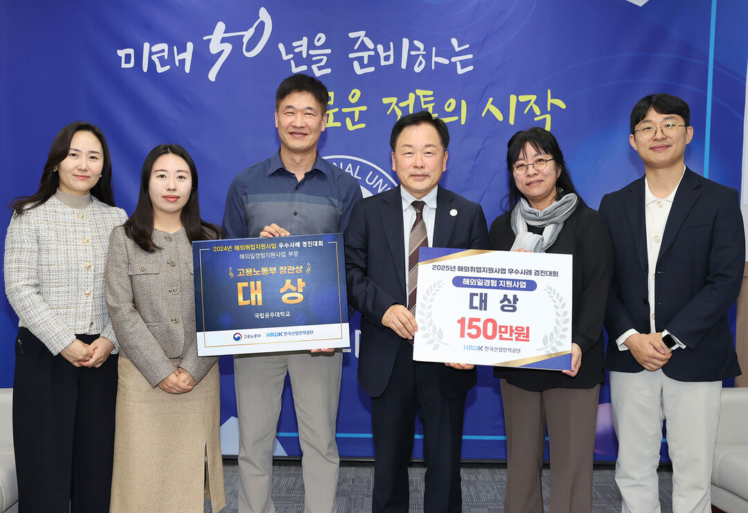 [대학저널 이선용 기자] 국립공주대학교가 고용노동부와 한국산업인력공단에서 개최한 ‘2025년 해외취업지원사업 우수사례 경진대회’에서 대상(고용노동부 장관상)을 수상하였다고 밝혔다. 이는 지난해에 이어 2년 연속 대상 수상이다.