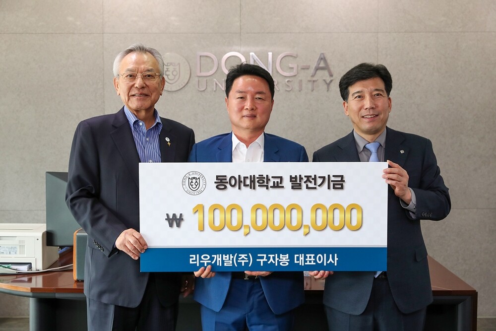 [대학저널 온종림 기자] 구자봉 리우개발 대표이사가 동아대학교에 학교 발전기금 1억 원을 기부했다.