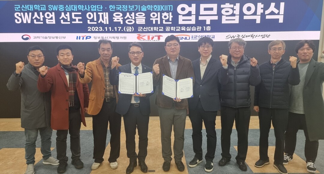 [대학저널 이선용 기자] 군산대학교 SW중심대학사업단과 (사)한국정보기술학회가 지난 17일, 군산대 공학교육실습관에서 SW산업 선도 인재 육성을 위한 업무협약을 체결했다.
