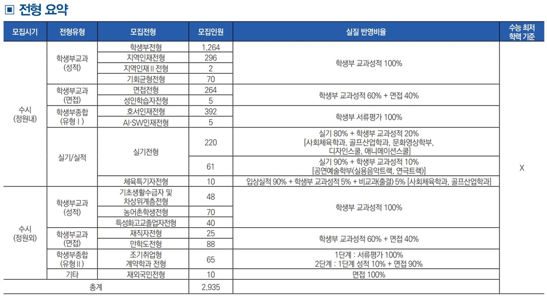 2026학년도 수시모집 2,589명 선발, 수능최저학력기준 없어