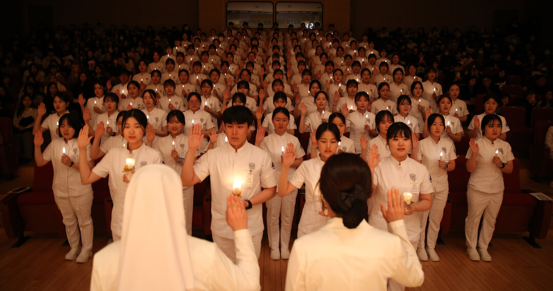 대구가톨릭대 간호대학 학생들의 나이팅게일 선서 장면. 사진=대구가톨릭대 제공
