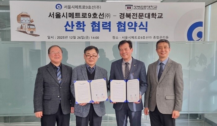 [대학저널 온종림 기자] 경북전문대학교 철도전기기관사과가 26일 서울시메트로9호선(주)과 산학협력 협약을 체결했다.