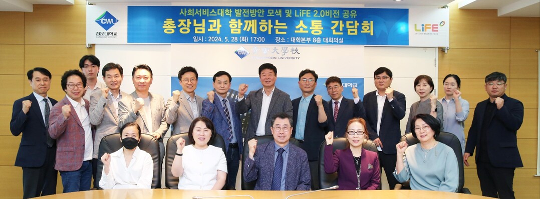 [대학저널 이선용 기자] 청운대학교는 5월 28일 대학본부 8층 회의실에서 사회서비스대학 발전방안 및 LiFE 2.0 비전 공유 간담회를 개최했다고 29일 밝혔다.