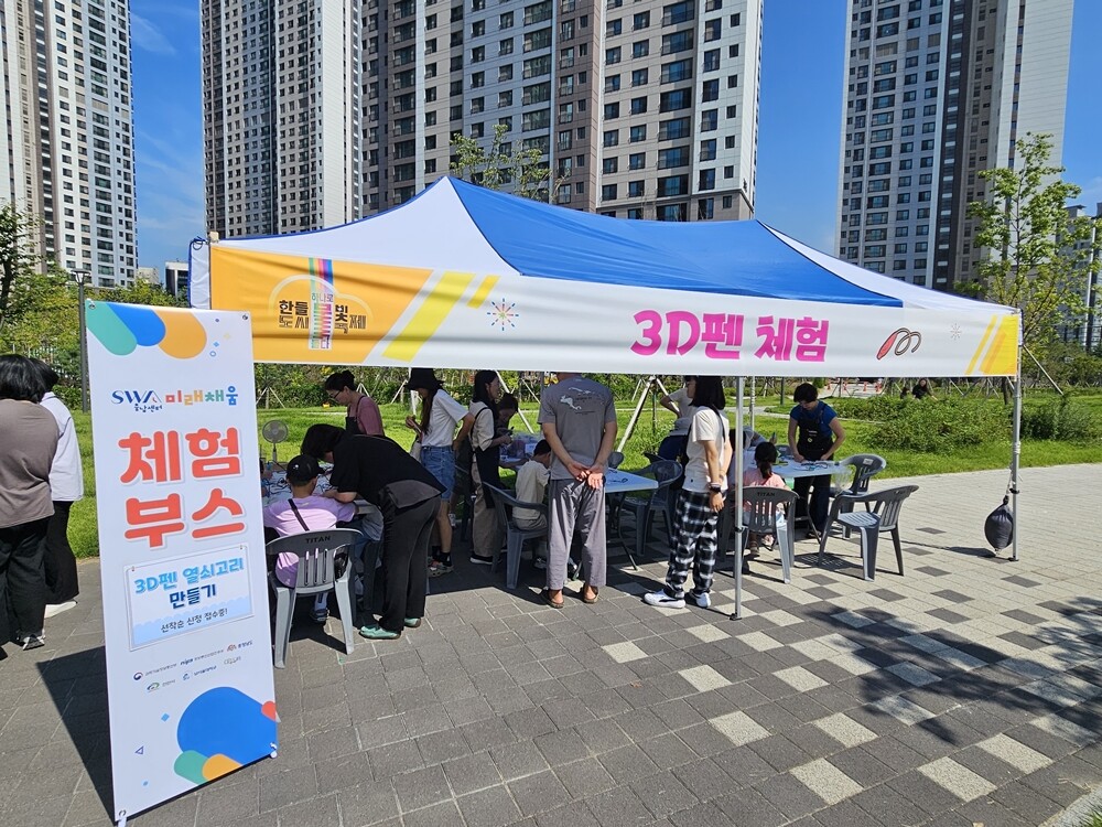 이번 축제에서 ‘소프트웨어(SW)미래채움 충남센터’는 충청남도 내에서 개최되는 지역 행사와 연계하여 체험교육 기회를 제공하기 위해 지역 주민들이 직접 의견을 모아 운영한 한들물및도시축제에 참여하여 3D펜 사용법 기초교육과 함께 참가자가 원하는 디자인의 입체작품을 직접 만들어 가져갈 수 있는 작품 만들기 프로그램을 실시했다.