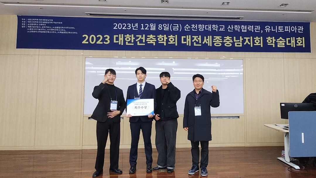 [대학저널 이선용 기자] 국립한밭대학교 설비공학과 학부생들이 지난 8일 열린 ‘2023 대한건축학회 대전·세종·충남지회 학술대회’에서 최우수상을 수상했다.