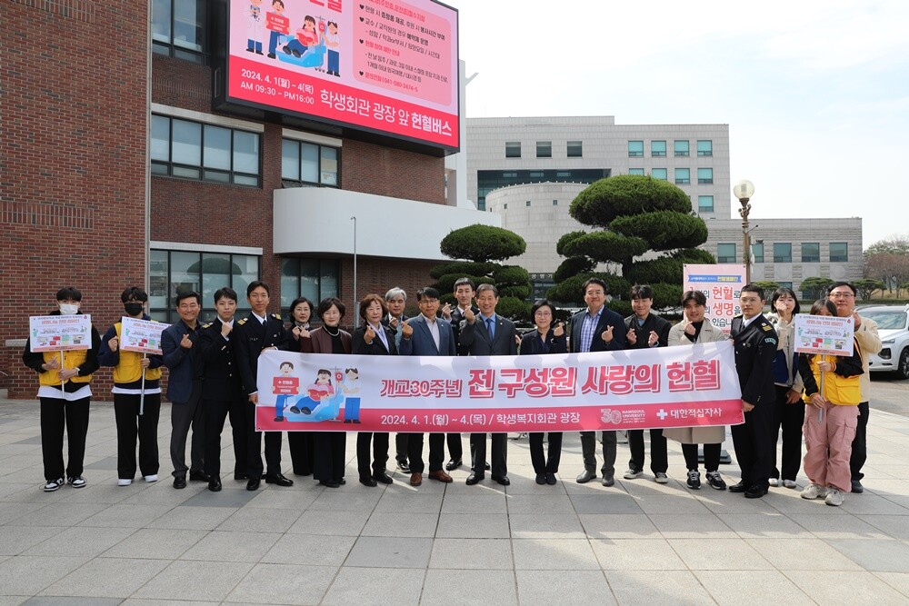 [대학저널 이선용 기자] 남서울대학교가 학생복지회관에서 대한적십자사 대전·세종·충남혈액원과 함께 ‘개교 30주년 기념 전 구성원 사랑의 헌혈’을 진행했다.