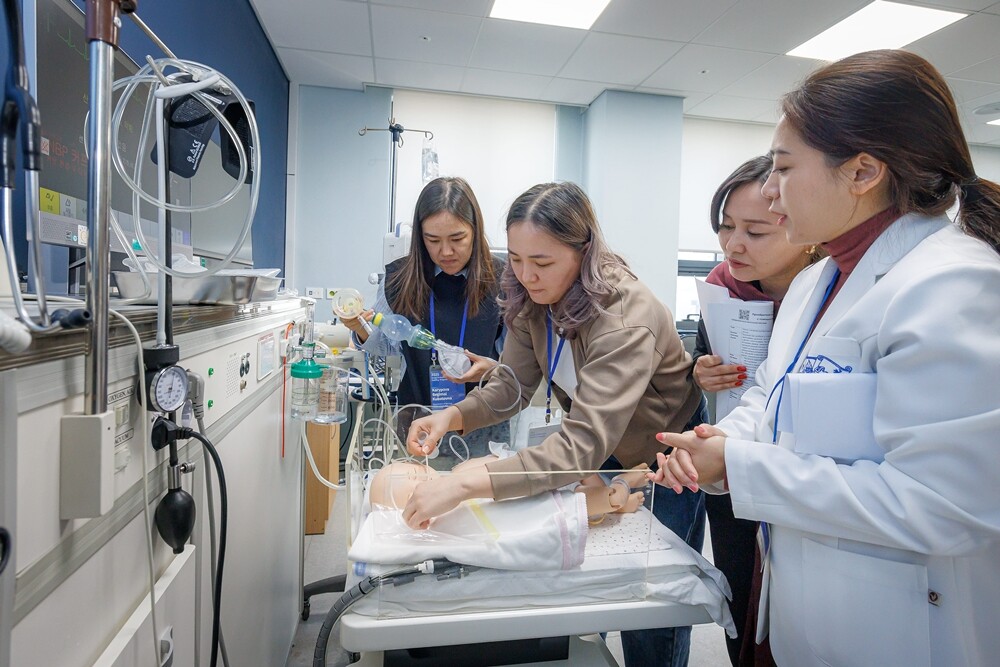 키르기즈국립의과대학 교수진이 아동 처치 시뮬레이션 실습에 참여하고 있다. 사진=경희대 제공 |
