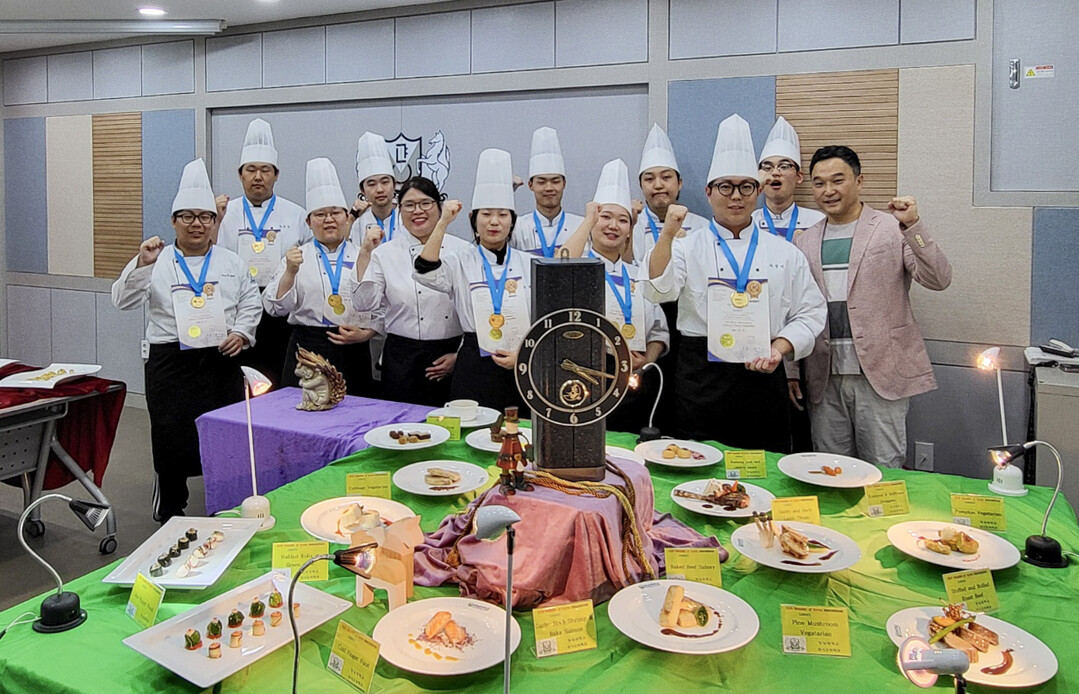 이어 지영민, 권영주, 정현용, 김명서, 이준수 학생은 ▲양고기, 소고기를 이용한 전채요리 ▲소안심, 오리고기, 양고기를 이용한 메인요리와 5가지 코스요리 ▲망고소스와 초콜릿, 과일을 이용한 디저트로 금상을 수상했다.