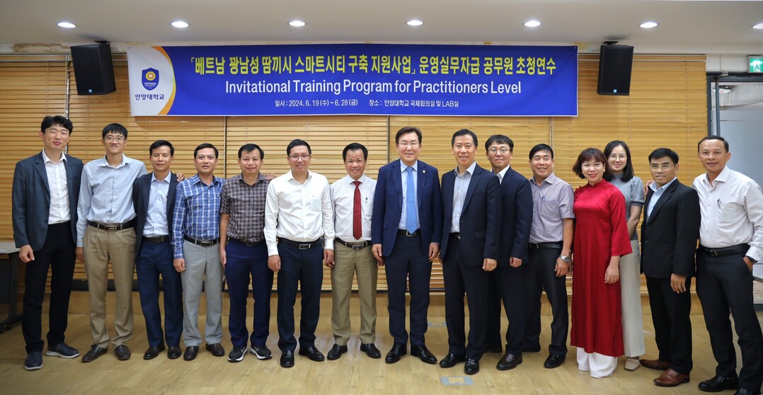 안양대에서 19일부터 열흘간 개최되는 ‘베트남 꽝남성 및 땀끼시 공무원 실무자급 연수’는 한국국제협력단(KOICA)에서 발주한 ‘제3차 베트남 꽝남성 및 땀끼시 스마트시티 구축 지원사업’ 가운데 하나이다.